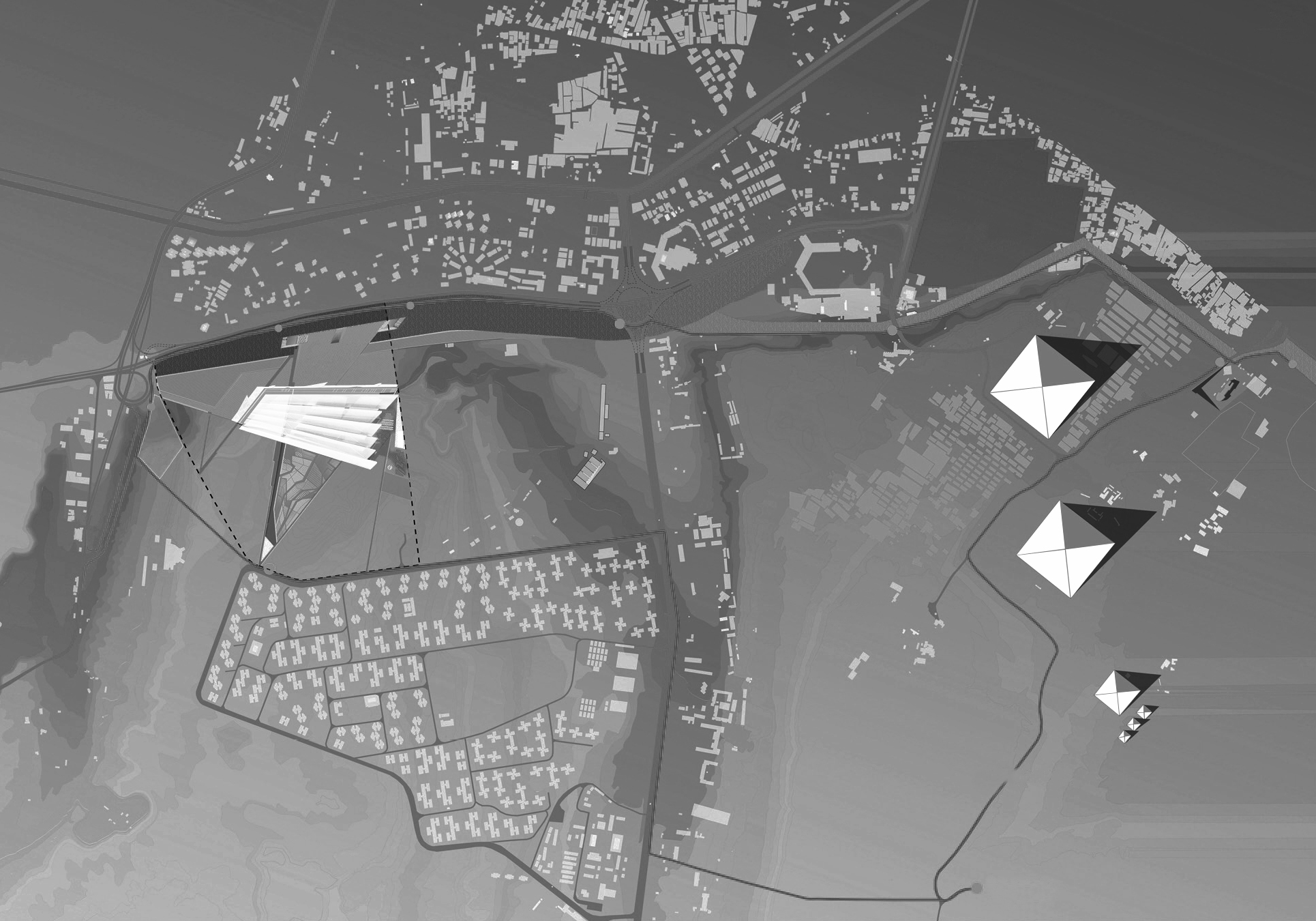 A 3-dimensional structure inscribed by a set of visual axes from the site to the three pyramids defines the framework within which the museum emerges, from the overall scale of the site to the smallest of details.