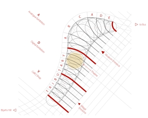 2. To the EAST, this same tributary becomes the story-teller, the narrator of this story-led museum. From within, the individual layered catenary defined vaults that fan from east to west would tell the exhibition of the ‘greatest story ever told’. Along the tributary edge, the story of the river Jordan would unfold both physical & symbolic. This would guide visitors, a map for their journey from the light, descending into an immersive darkness and re-emerging back into light again. To enhance the experience of the biblical ground, the floor of the museum is gently raised above it, allowing the ground to slip under and into the space of exhibition or concealed when not desired. The exhibition space is conceived of as INFRASTRUCTURE.
