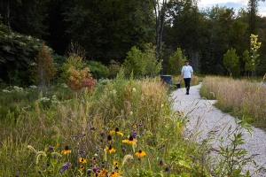 A rethought arrival sequence gathers all visitors in an "Outdoor Lobby," a threshold that transitions between the outside world and the museum. Consolidating parking eliminates vehicles within the Art Center and reclaims five acres of former parking lots. A serpentine walkway, calibrated to reveal key views, guides visitors through the terrain.
