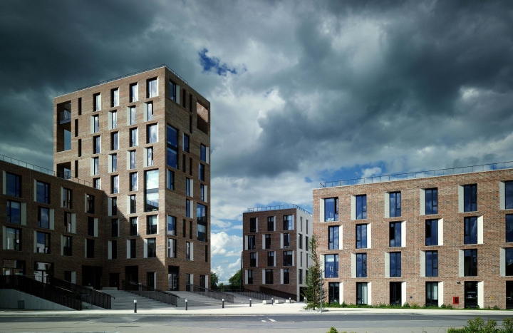 The proposal for student housing is based on a three-sided quad which allows a chain of interlinked quads to be formed, switching direction to respond to orientation or existing buildings.