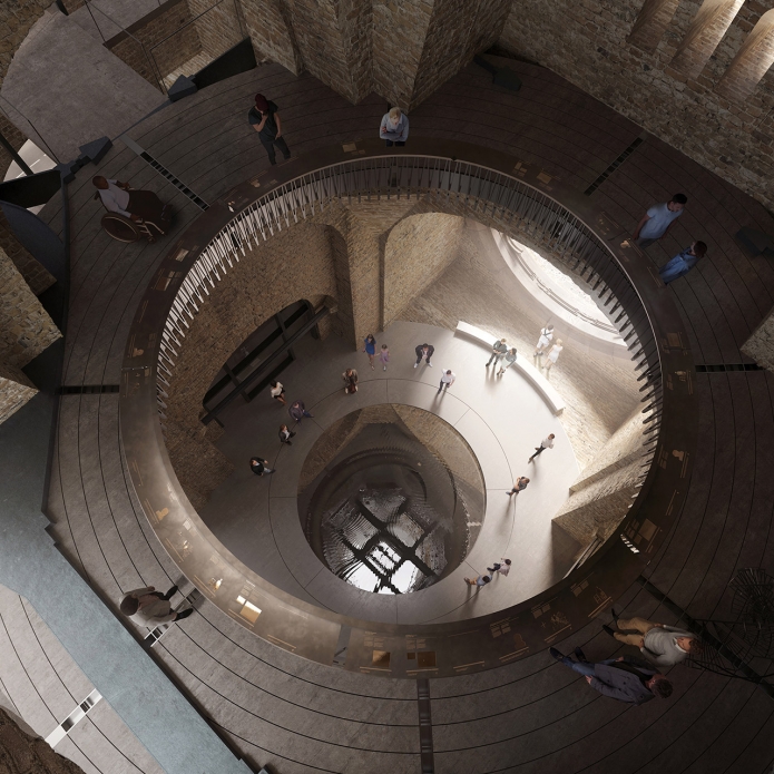 New exhibition planning and extension in the Old Tower of the Kaiser Wilhelm Memorial Church: heneghan peng architects, Dublin, with Ralph Appelbaum Associates, Berlin, and artist Susan Philipsz win first prize.